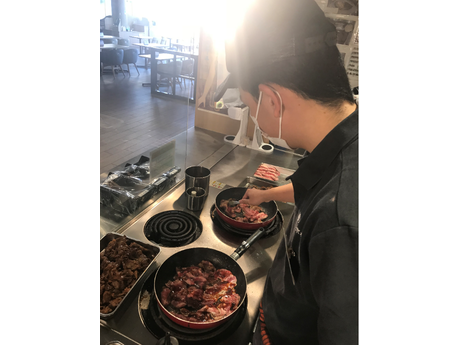 と注文受けて⇒お肉を焼いて⇒どんぶりへ◎